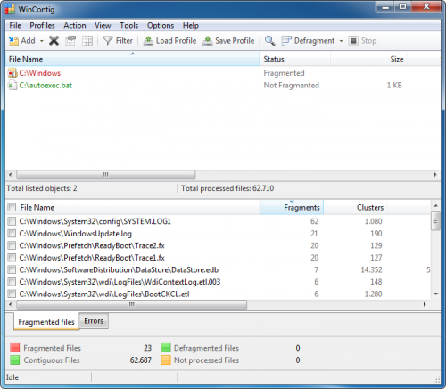 WinContig is an easy-to-use stand-alone defragmentation tool that doesn't create any installation directories or Registry entries on your computer. Its purpose is to quick defrag files without the need to defrag the whole disk. In addition, WinContig allows you to group files into profiles, and also it accepts a number of optional command-line switches that you can use to control how the program operates.